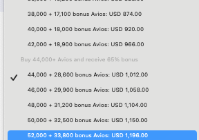 It just so happens that the minimum purchase that will net you 70,000 is also the lowest threshold that triggers the maximum 65% discount – great.