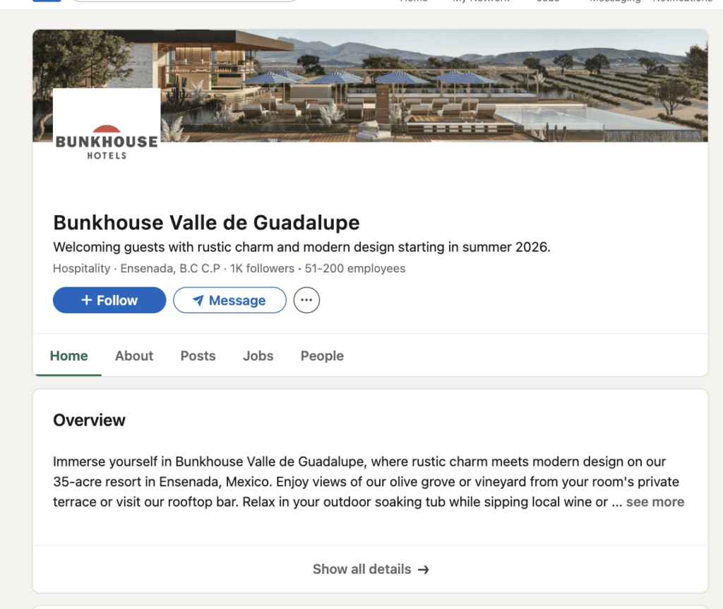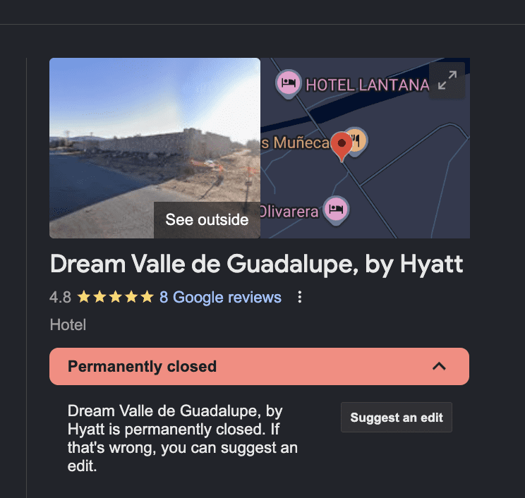 I’m optimistic that it will, and I think the ‘permanently closed’ might just refer to the state of the project when it was under the Dream brand. It’s not dispositive by any means, but there is a live LinkedIn page for the Bunkhouse Valle de Guadalupe.