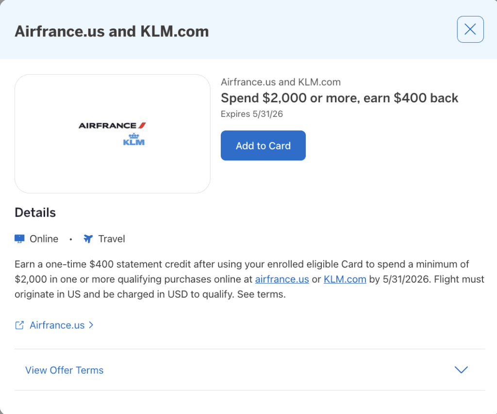 Amex recently released a solid offer for Air France and KLM. You can earn a $400 statement credit on spend of $200 or more with Air France.US of KLM.com.