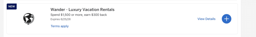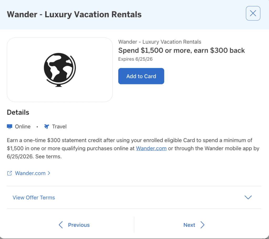 tl;dr – A new Amex merchant offer where you can save $300 at your next Wander stay.