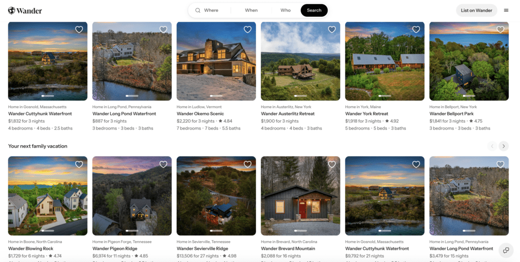 Wander’s houses tend to skew a bit more high-end and as alluded to above, are usually a bit more secluded/immersed in nature. Could be a good opportunity to save a few books on your next group/family gathering!