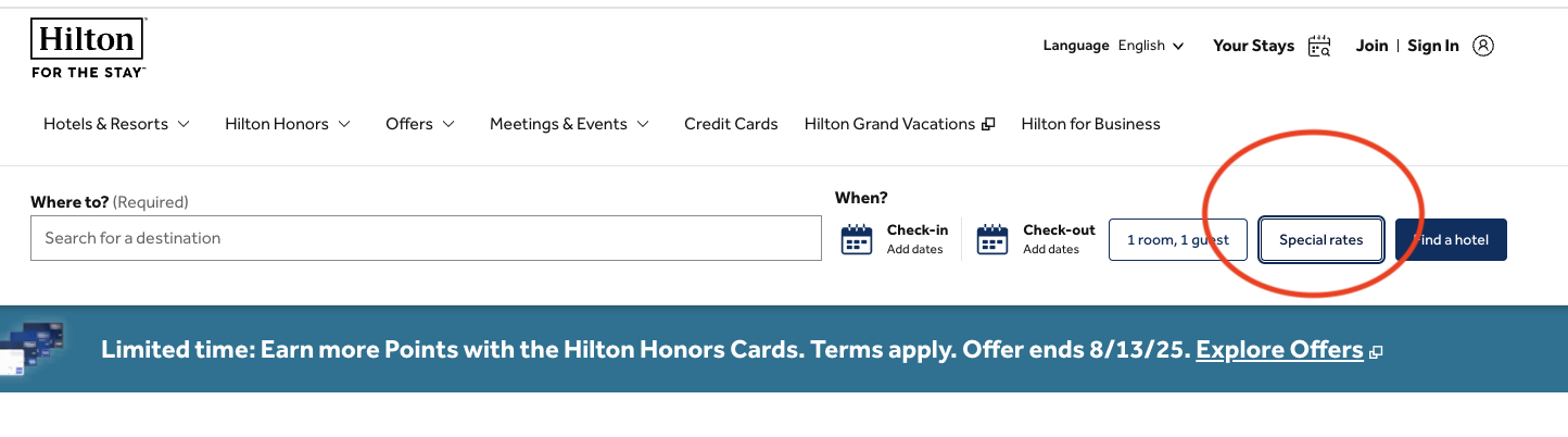 This deal has been around for a while, and it’s the ‘LRM Extra Night’ rate. You can access it by applying the rate code ‘PBBOG1’ in the promotion code box (under special rates) when searching for a hotel on Hilton.com.